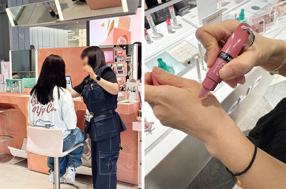 The second floor is dedicated to Beauty & Culture, and the third floor operates as Skin & Wellness. On the second floor, the Lux Edit section curated by Olive Young allows visitors to experience stylish and trendy brands across categories like color, luxury, and fragrance. With reservations in advance, you can enjoy professional beauty services for free, such as makeup sessions and personal color consultations.