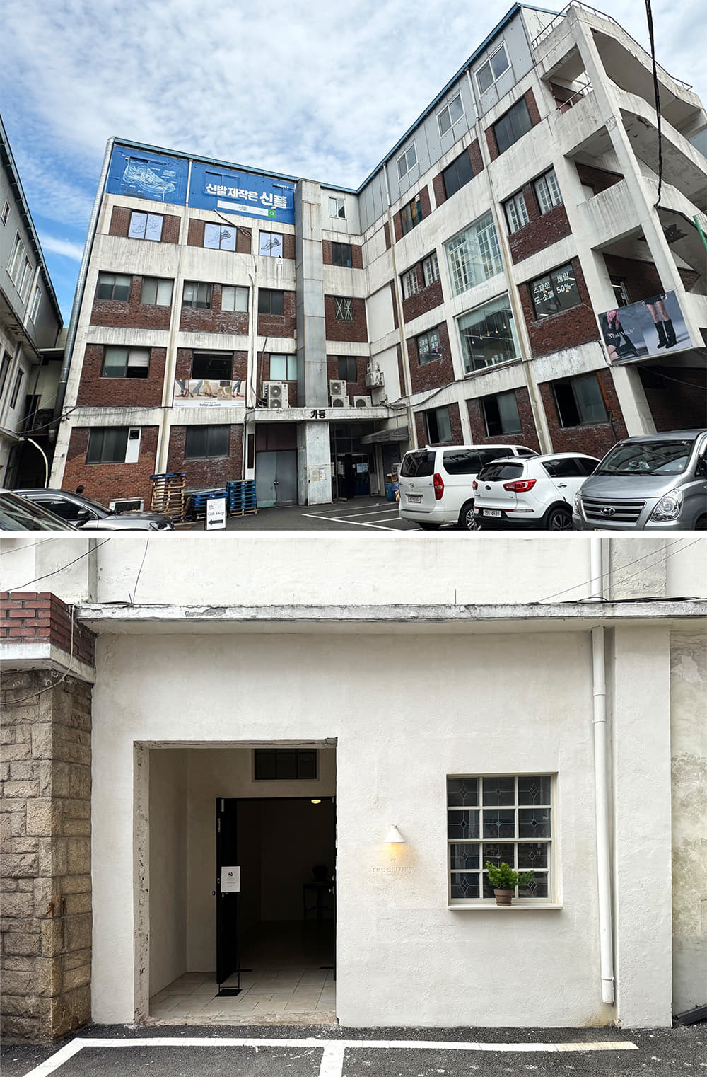 Yeonmujang-gil, where Repertory Seongsu is located, is a street where the “tree rings” of Seongsu’s history are most vividly visible. After passing sparkling pop-up stores and brand collaboration galleries, a worn-down entrance leads into an old apartment-style factory building. It almost feels unbelievable that such a refined shop could be hidden here. At the far end of Building “Na-dong,” across the factory courtyard, you’ll find Repertory Seongsu.