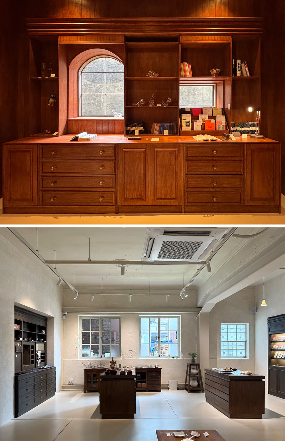 Here you can find handmade mini keyrings and dried pollack talisman objects by Miniki, soft fabric book covers by Mergy, metal mobiles and bells by Obso, as well as leather goods from Sienna Leather House and a vintage-inspired silver jewelry collection crafted entirely by hand. Most of all, pay attention to the section beside the counter, which highlights objets by up-and-coming artists. It’s a chance to encounter unique handcrafted pieces you might not be able to purchase again.