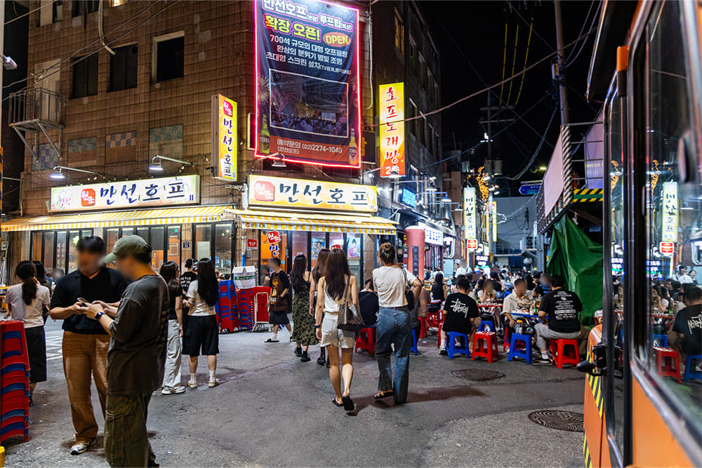 Nogari Alley is not new. These open-air beer “hofs” date back to the 1980s, serving affordable anju (drinking snacks) to workers from the nearby printing shops. What is new is the way young people have rediscovered it, transforming an old workers’ haunt into one of the city’s liveliest nightspots.