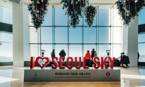 The Lotte World Tower, visible from all corners of Seoul and even from some points in Gyeonggi-do Province, is truly one of the most well-known places in Seoul. Located at the very top of the Lotte World Tower, the world’s fifth-highest building and the tallest in Korea, the Seoul Sky Observatory is already a prominent place among Koreans and travelers from all over the globe.